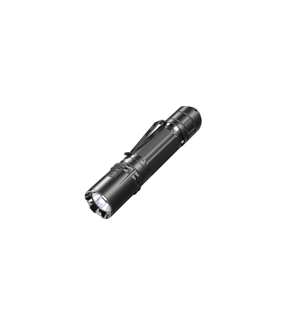 Die Lampe XT2CR PRO ist eine wiederaufladbare Lampe mit linearem Design, die dank ihres integrierten USB-C-Anschlusses einfach zu bedienen ist, da die Lampe zum Aufladen des Akkus nicht auseinandergebaut werden muss. Sie verfügt über eine Kontrollleuchte, die den Ladezustand des Akkus anzeigt. Dank ihres doppelten taktischen Schalters auf der Rückseite lassen sich die verschiedenen Modi schnell und einfach auswählen. Dank ihres gezackten Rings an der Vorderseite kann sie auch als Glasbrecher verwendet werden.