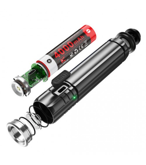 Lieferung mit integriertem Lithium-Ionen-Akku 21700 4000 mAh, einem USB-Ladekabel Typ C auf USB Typ C, einem USB-Stecker, einem iPhone-Stecker und einer Handschlaufe