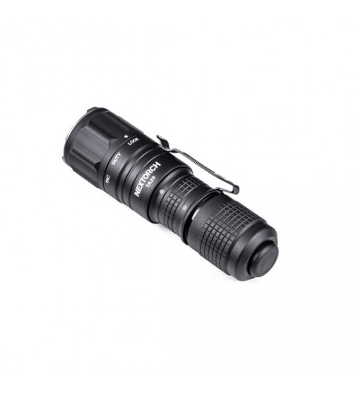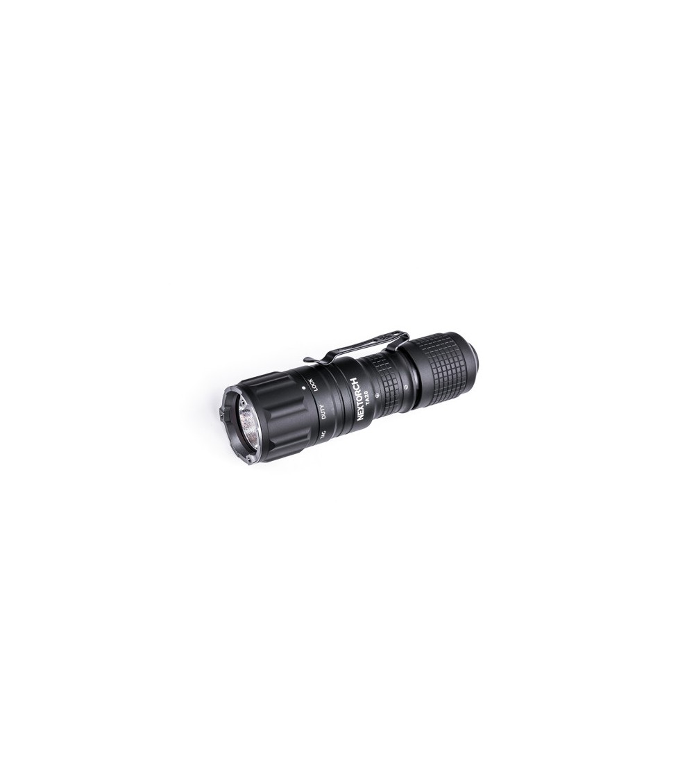 Die Lampe TA20 ist eine ultrakompakte, robuste und benutzerfreundliche wiederaufladbare taktische Lampe. Sie verfügt über einen Akku mit USB-C-Anschluss, sodass sie ohne externes Ladegerät aufgeladen werden kann. Sie verfügt über einen Schalter auf der Rückseite und einen Drehschalter, um schnell und einfach auf die verschiedenen Modi zugreifen zu können. Ihr rutschfestes, strukturiertes Gehäuse liegt gut in der Hand und kann dank des abnehmbaren taktischen Rings auch während des Gebrauchs einer Handfeuerwaffe gehalten werden. Dank ihres gezackten Rings an der Vorderseite kann die Lampe auch als Glasbrecher verwendet werden.