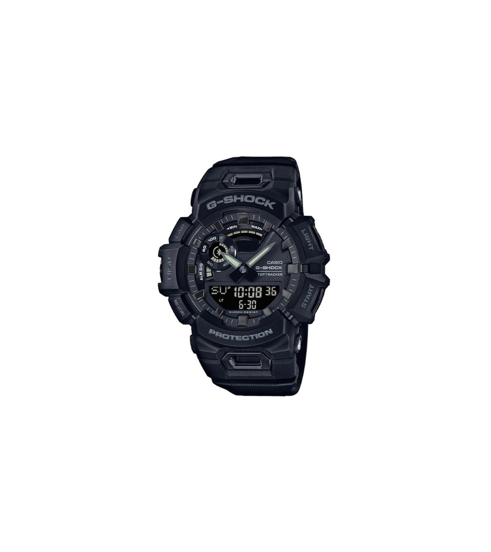Die Armbanduhr G-Shock GBA-900 ist ein innovatives Sportmodell, das dank seines Zifferblatts aus Mineralglas und seines Gehäuses und Armbands aus Harz, einem strapazierfähigen und flexiblen Material, besonders robust ist. Dank ihres LCD-Displays und ihrer großen Zeiger aus Aluminium für die Stunden und Minuten bietet sie eine beispiellose Anzeigequalität. Was die Funktionen angeht, lässt sie sich mit der G-SHOCK MOVE-App des Smartphones verbinden, um mit dem Beschleunigungsmesser präzise Messungen durchzuführen, und bietet die Möglichkeit, den Aktivitätsverlauf einzusehen.