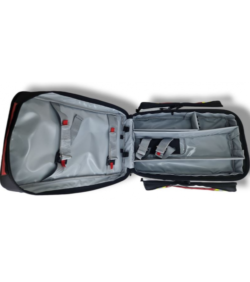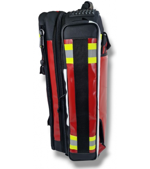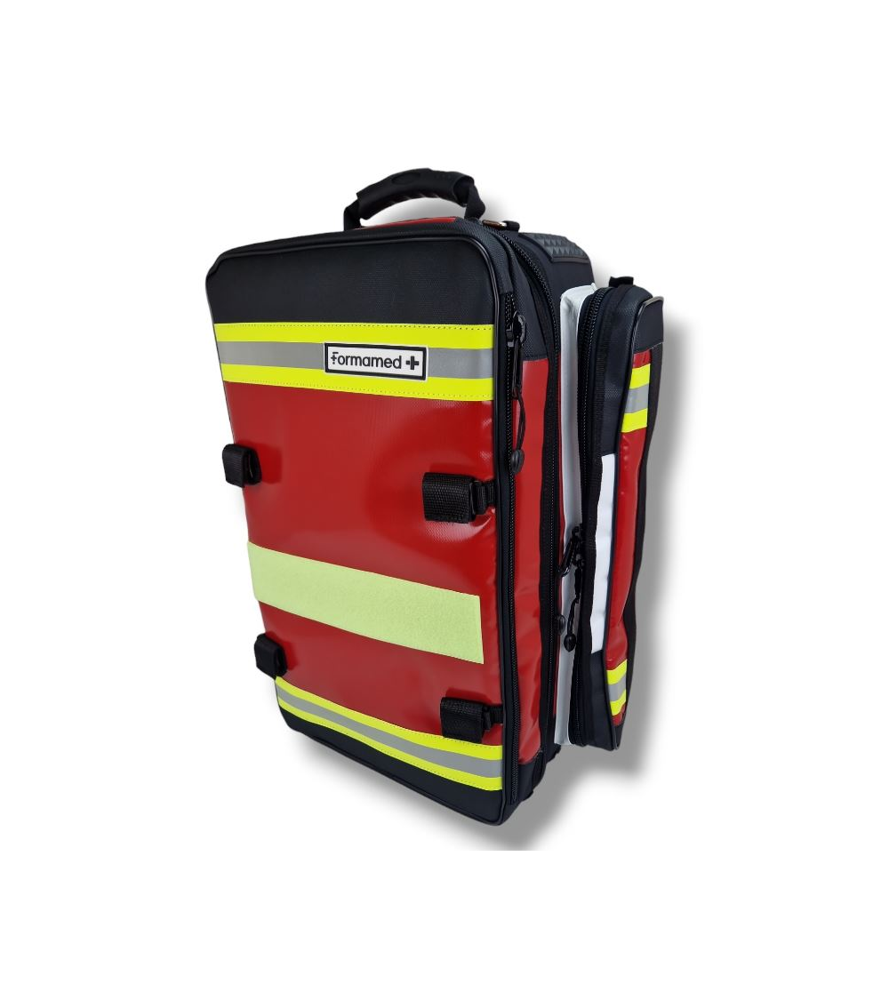 Formamed AMBUPRO XL ECHO PVC-Tasche, rot Für medizinische Module und Sauerstoff. Zwei lange Seitentaschen aus verstärktem PVC. Zwei rechteckige Kunststoffschutzvorrichtungen, die auf den schwarzen Gurt an jeder Seitentasche aufgenäht sind. Farbe der Seitentaschen: rot. Schwarzer YKK-Reißverschluss, Größe 10 mm. Klettverschluss mit 10 cm Durchmesser zwischen den beiden HSi20 oben. Kein funktioneller Klettverschluss (27 x 7 cm) im oberen Teil der Tasche. Gewicht: leer ohne Taschen: 3,85 kg. Maße: 44 x 18 x 58 cm, Volumen 36 Liter. 4 Jahre Garantie.